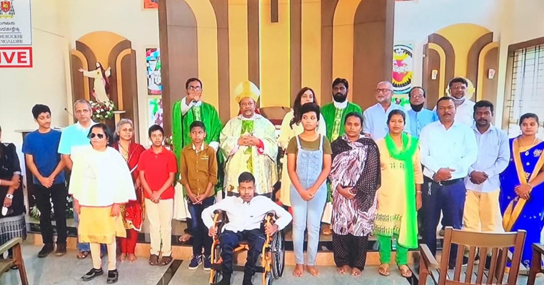 Article 2020 - 2021Distribution of Assessment ReportsThe parents collected the Assessment Report from school, maintaining physical distance norms, as directed by the Government for COVID-19. Holy Eucharist and Prayer ServiceThe Commission for the Differently Abled, Archdiocese of Bangalore organized a special Holy Eucharist Celebration for the Special Children at PalanaBhavan. The Holy Mass was offered by Most Rev. Archbishop Dr.Peter Machado. One of our students, Peter Cherukara, got an opportunity to read the intention during the Holy Mass.