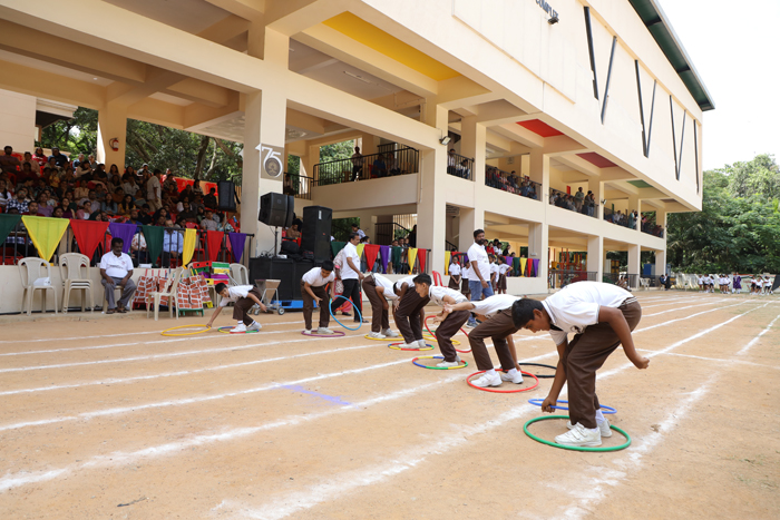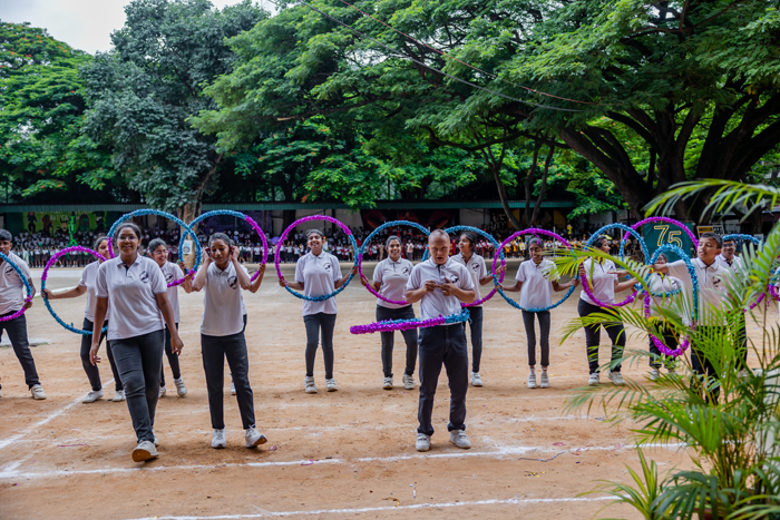 Senior Annual Sports Meet 2024Sports Day at Sophia High School is always a dynamic and exhilarating event, and this year was no exception. The festivities commenced on July 6th, 2024, with Ambica Iyengar Knecht, an alumna and Ekalavya Awardee, as the Chief Guest, accompanied by the Guest of Honour Sr. Mary Chetana, the Provincial Superior of Our Lady of Visitation Province. They were warmly welcomed by the NCC cadets, Sophia Brass Band, Sr. Alpana, our principal, and the Sisters of Notre Dame. The day began with the unfurling of the school flag, followed by a disciplined and united march past by all the houses: Julie, Barat, Bennet, and Andersson, as well as the Sophia Opportunity School. The students from Sophia Opportunity School also participated in the 'Spinning into Shape' display, performing with hula hoops. Additionally, they participated in the 200-meter and 100-meter runs, adding to the day's vibrant and cohesive program. Sports Day was a wonderful opportunity for the children to compete, try their best, and win laurels for themselves and our school. Mass demonstrations, sprints, relays, march past, and other novelty activities provided an excellent platform for our students to showcase their talents and skills.