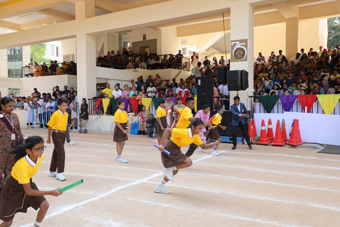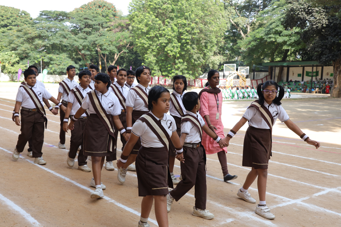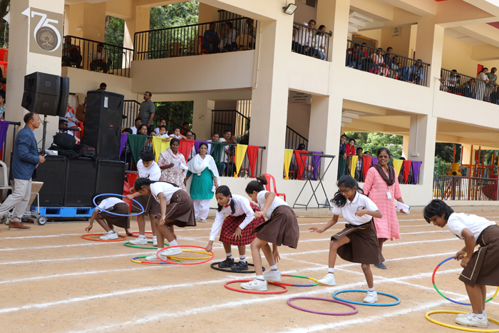 Junior Sports DayJunior Sports Day at Sophia High School was a dynamic event held on November 8th and 9th, 2024. The Chief Guests were Mrs. Vanaja Narayanan on the first day and Mrs. Mukesh Pannu on the second. They were joined by the Guests of Honour, Sr. Mary Chetana, Provincial Superior, and Sr. Mary Priscilla, Assistant Provincial of Our Lady of Visitation Province. They were warmly welcomed by the NCC cadets the Sophia Brass Band, Sr. Alpana (our principal), and the Sisters of Notre Dame. The event began with the unfurling of the school flag, followed by an impressive march past led by the Head Girl, featuring all school houses and Sophia Opportunity School. Unique displays showcasing balance and coordination added an artistic touch, while thrilling races, including the 100m, 200m, and novelty events, made the day unforgettable.